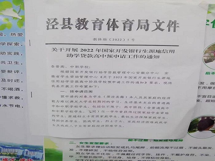 根据教体助[2022] 5号文件精神以及2022年国家开发银行生源地助学贷款预申请工作提示要求,188金宝博唯一官网_wap.sports918.com通过在班主任工作群通知、在各班级发放宣传材料、组织学生学习助学贷款政策等各种方式,让学生和家长充分了解国开行助学贷款政策、申请流程和还款方式,让他们知悉,通过预申请的学生,在办理助学贷款时免于资格审查,到县资助管理中心直接办理即可。此次预申请工作,让学生及家长进一步了解了国家资助政策,一定程度上缓解了因为高考和家庭经济困难带来的双重心理压力。