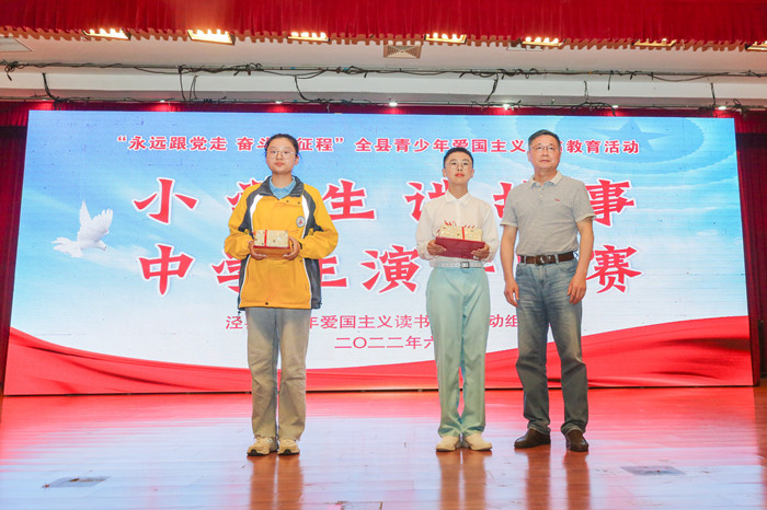 刘若娴:高一(15)班学生,她演讲的主题是《青春心向党 建功新时代》,在演讲中,她精神饱满、自信大方、富有激情,用自己的话语诠释着对党、对祖国和人民深深的爱。她激情慷慨的演讲,表达着泾县中学学子对中国共产党的无限热爱和赞颂。真挚的情感、生动的语言,深深地打动了评委和观众,现场掌声雷动、经久不息,充斥着昂扬向上的氛围。