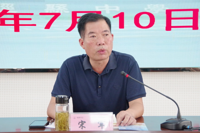 7月10日上午,188金宝博唯一官网_wap.sports918.com在阶梯教室召开2022年春季学期结束教职工大会暨暑期“百名教师访千家”动员部署会。校党委副书记许小江主持会议,县人大常委会副主任、校党委书记宋军作动员讲话,全体教职工参加会议。