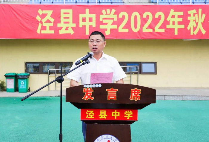 县人大常委会副主任、校党委书记宋军发表了题为“击水中流 赓续辉煌”激情洋溢的讲话。宋书记首先代表学校向全体教职工致以节日的祝贺和崇高的敬意!向刚刚成为泾中学子的高一新同学致以热烈的欢迎!向刻苦学习、不断进步的高二、高三同学们致以最亲切问候!向一直厚爱、支持、帮助188金宝博唯一官网_wap.sports918.com的家长朋友和社会各界人士表示衷心的感谢!向获得表彰的十佳教师、十佳班主任、感动校园团队、十佳学生和奖学金获奖的同学们表示热烈的祝贺!
