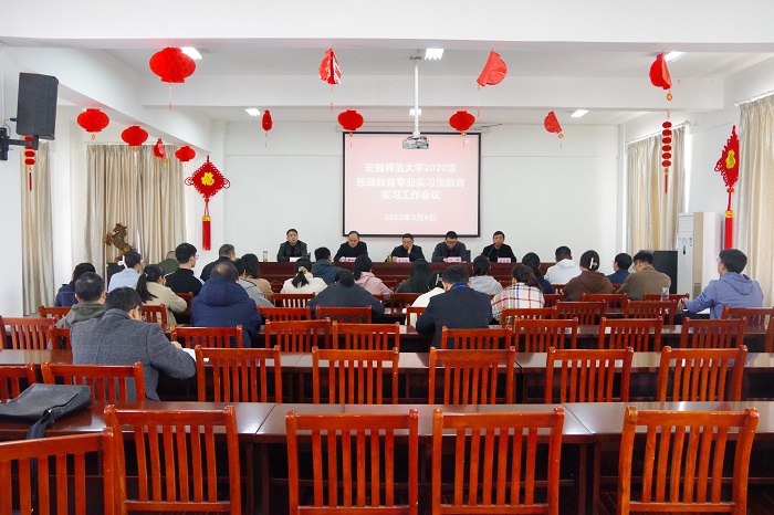3月6日上午,来自安徽师范大学马克思主义学院2020级思想政治教育专业的10名实习生来188金宝博唯一官网_wap.sports918.com报到,开始为期12周的教育教学实习工作,这是188金宝博唯一官网_wap.sports918.com与安徽师范大学马克思主义学院签约共建教育实习基地后深化合作的重要内容。为确保本次教育实习工作顺利开展并取得成效,3月6日下午,188金宝博唯一官网_wap.sports918.com在综合南楼302会议室召开教育实习工作会议,校党委副书记许小江、副校长翟礼文、各相关处室负责人、教学指导教师、班主任工作指导教师及全体实习生参加会议。会议由教导处主任方利军主持。