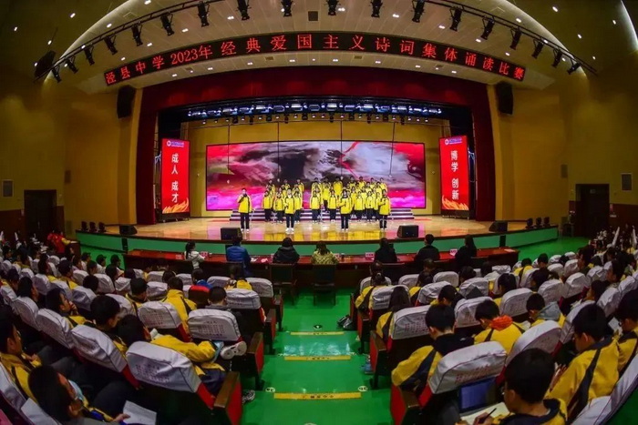 每个班级的朗诵都紧紧围绕着“爱国”,真挚感人,热情饱满,为观众们献上了一场精彩纷呈、充满活力的视听盛宴。比赛现场气氛热烈,同学们热情高涨,每个班级都以饱满的激情和激昂的语言来展现自己的实力,把对祖国的热爱之情表达得淋淋尽致。选手们声情并茂、激情澎湃地朗诵着经典诗歌作品,深深地感染了在场的每一位同学,整个赛场高潮迭起,掌声雷动。