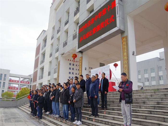 升旗仪式结束后,举行了高一高二第十届乒乓球比赛颁奖仪式,校领导对获奖学生和集体给予表彰,对全体参赛同学给予鼓励。