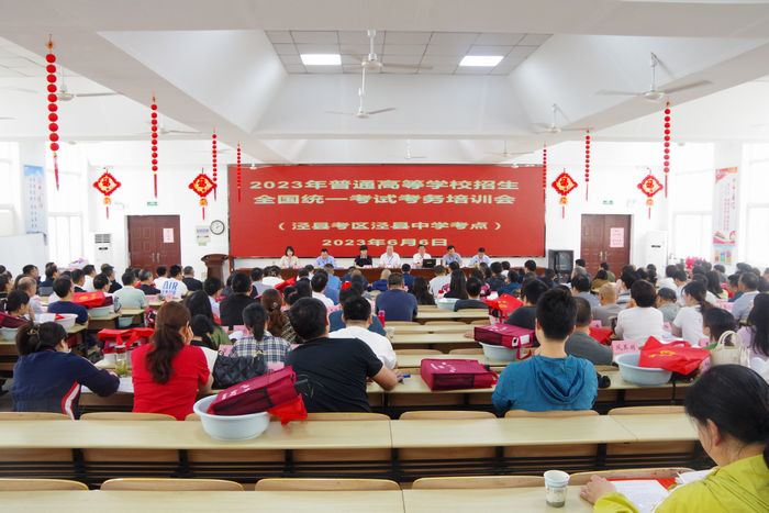 县人大常委会副主任、2023年高考泾县中学考点主考、188金宝博唯一官网_wap.sports918.com党委书记宋军通过多媒体课件就考场布置、考试管理、信号时间、注意事项和工作纪律及要求等方面对广大监考教师及工作人员做了全面而详细的考务培训。他要求全体人员要高度重视,认真负责,尽心尽职尽力,工作做到严之又严,实之又实,慎之又慎,细之又细,确保2023年高考泾县中学考点实现平安高考目标!