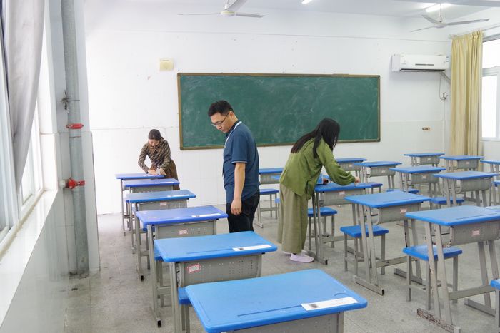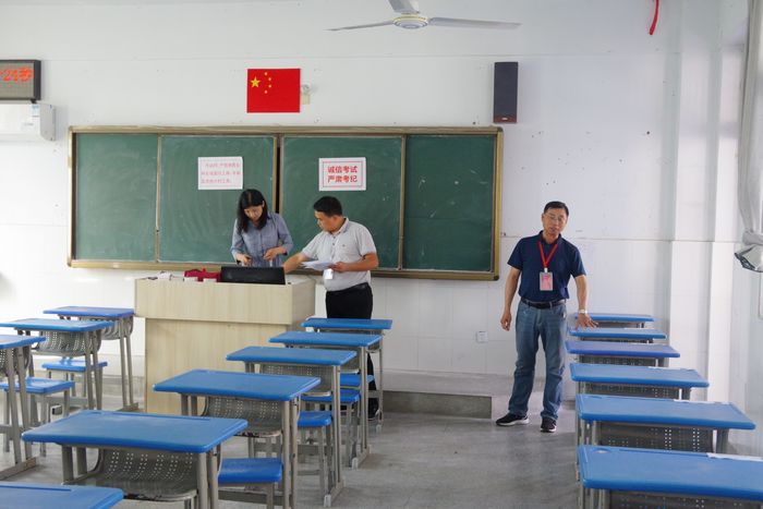 会后,全体监考教师对各考场进行了精心布置,相关领导对考场进行了严格验收。