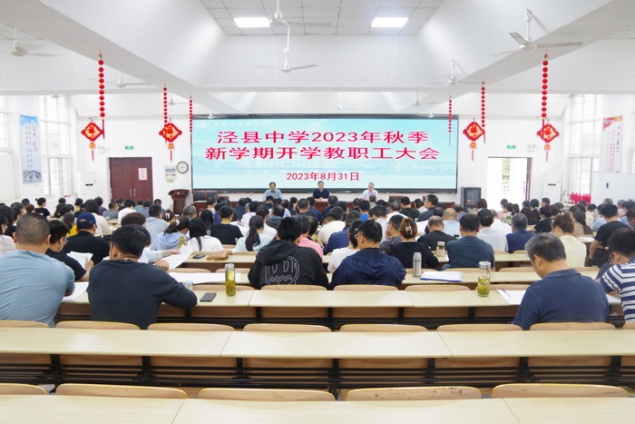 “夏日泾中人倍忙,育桃培李斗志昂”。暑假期间,全体泾中人挥洒汗水,同心协力,在火热的季节干了一番火热的事业,出色完成了各项任务。会上,县人大常委会副主任、校党委书记宋军深情总结回顾了暑期188金宝博唯一官网_wap.sports918.com“干了什么,成效如何”,“三大战役”顺利收官即生源外流阻击战基本完成,“泾中人”奋发图强,砥砺前行;百名教师访千家主动战,“泾中人”不畏辛劳,收获满满;集体备课攻坚战,“泾中人”厉兵秣马,奋力追赶。同时,学校还圆满完成了班主任培训、新高一课程设置和班级配备、校园维修、新生军训等重点工作。