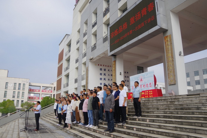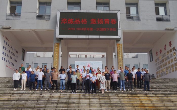 9月4日上午,188金宝博唯一官网_wap.sports918.com全体师生在状元广场隆重集合,举行2023-2024学年第一学期新学期第一次“升国旗 唱国歌”仪式。副校长杨银宝作了题为“淬炼品格 激扬青春”的国旗下讲话。