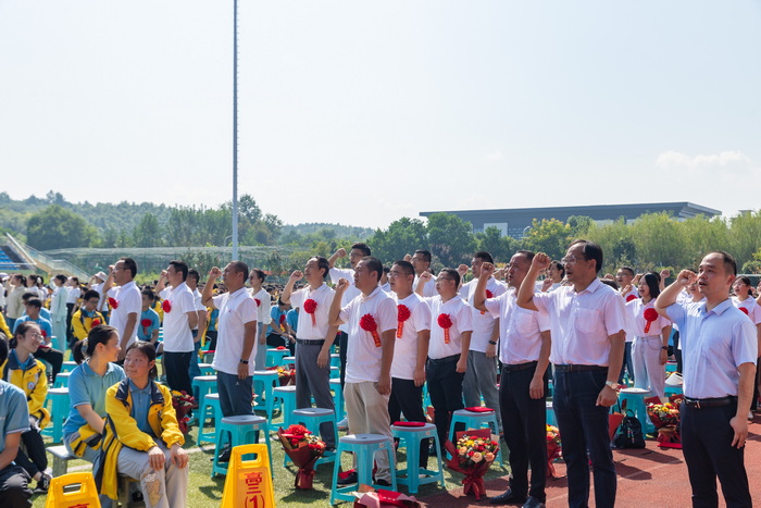 教育大计,教师为本。校长助理、直升部王炜主任领誓带领该校全体教师庄严宣誓,表示忠诚党的教育事业,遵守教育法律法规,履行教书育人职责,尽心尽职尽力,努力培育学生成人成才成功。