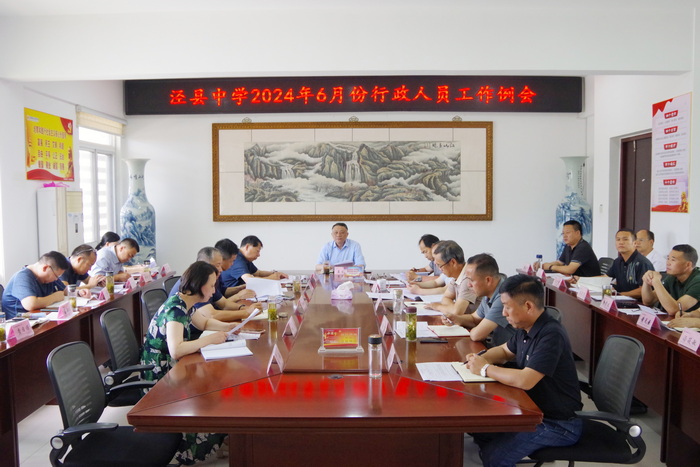 王校长在讲话中强调,临近高考和学期结束,各处室各部门要科学合理地安排好各项工作,提前谋划,主动作为,确保工作布置到位、落地生根。王校长要求,各人员要切实做好2024年高考、期中教育教学表彰、校园安全排查及管理、新高一师资配置及准备、暑期工作谋划及安排等工作,各处室、各人员同心协力,扎实工作,全力推动学校教育教学等工作再上新台阶,为县域经济社会高质量发展贡献“泾中人”的智慧和力量。