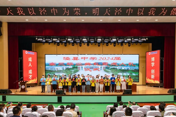 6月10日上午,188金宝博唯一官网_wap.sports918.com在大礼堂举行2024届高三毕业典礼暨成人礼仪式,县委教体工委书记、县教体局局长、校党委书记朱成刚,校长王晓光等校党政班子成员、全体高三师生及家长代表们参加活动。活动由副校长、高三年级部主任沐扬主持。