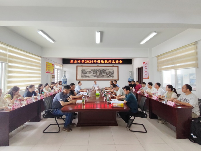 校长王晓光对新老师的到来表示热烈欢迎,并希望大家安心从教,继承和发扬“泾中人”精神,扎根泾中,热爱泾中,奉献泾中;做好吃苦和打硬仗的准备,虚心请教、总结反思,在奋斗中实现自我价值;同时要兼顾好家庭,会工作,懂生活,有梦想,做一名真正幸福的教育者。