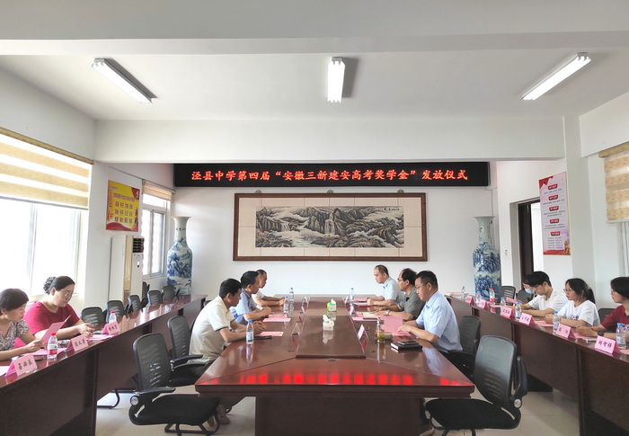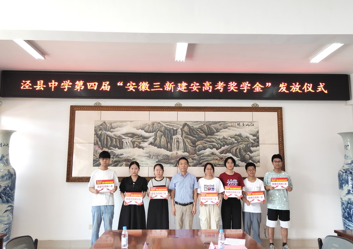 发放仪式上,副校长沐扬宣读了《泾县中学“安徽三新建安高考奖学金”管理办法》及第四届“安徽三新建安高考奖学金”的评选结果。随后,安徽三新建安有限公司董事长郭维清为今年受奖励的历史、物理方向前三名的7位学生发放奖学金。