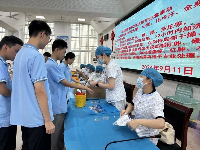 现场筛查中,医护人员对学生的健康状况、既往史、禁忌症和过敏史等情况进行了问诊,详细掌握学生的身体情况。活动现场通过临床症状筛查和结核菌素皮肤试验(PPD)等开展结核病筛查,并详细记录相关信息,同时医务人员还现场进行结核病防治核心知识宣教。