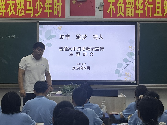 校资助中心精心制作资助政策宣传PPT,各班级认真组织学生学习了解普通高中学生资助政策,还有一些班级邀请受过资助的学生分享参与申请各类资助活动的亲身经历。主题班会上,同学们了解到:目前,我国已建立起以政府为主导,社会力量积极参与的普通高中家庭经济困难学生资助政策体系。对家庭经济困难学生认定工作的依据、程序以及国家助学金评议的过程及档次等情况也有了进一步的了解。