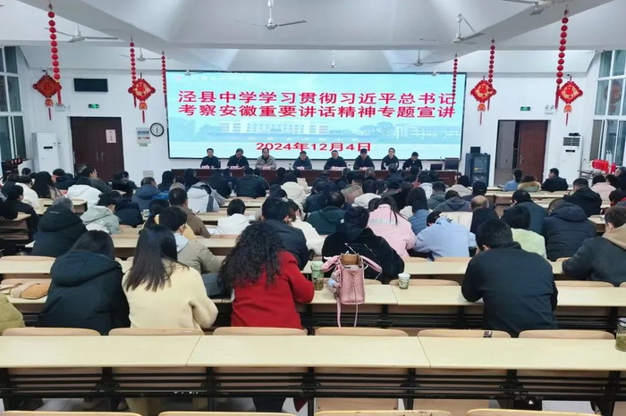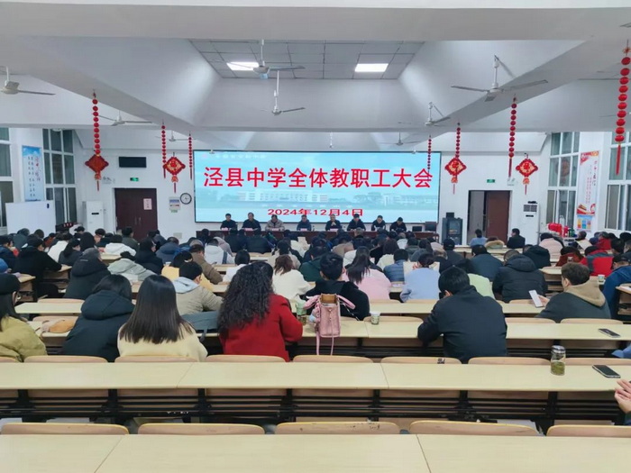 12月4日下午,泾县中学在阶梯教室召开全体教职工大会,校长王晓光主持会议,全体教职工参加会议。