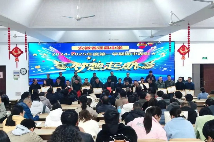 副校长林兴华宣读了《wap.sports918.com2024-2025学年第一学期期中考试优秀班集体和双新推进优秀备课组的表彰通报》文件,并就近期教学教研等工作进行了布置和强调。与会的校领导为本学期期中考试受表彰的优秀备课组和班集体一一颁奖,希望受到表彰的班集体和备课组珍惜荣誉,戒骄戒躁,不断提高抢抓发展机遇和应对困难挑战的能力;希望全体教师以更加饱满的工作热情、更加昂扬的精神状态,为把学校建设成县委县政府放心、人民群众满意的泾县人民“家门口”的优质省级示范高中而接续奋斗!