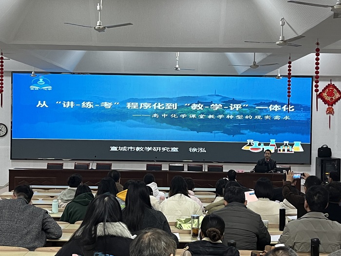 为深入理解和实践基于核心素养的教学评一致性理念,探索在核心素养框架下实现教学目标、教学活动与教学评价高度统一的有效途径,提升教学活动的针对性和实效性,同时培养学生的关键能力和必备品格,12月4日,宣城市高中教师化学学科教学评一体化能力提升专项培训活动在188金宝博唯一官网_wap.sports918.com举行。来自宣城市普通高中教学一线的240多名化学教师齐聚188金宝博唯一官网_wap.sports918.com,聚焦核心素养,围绕高中化学“教学评”一体化展开探索与交流。