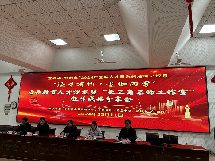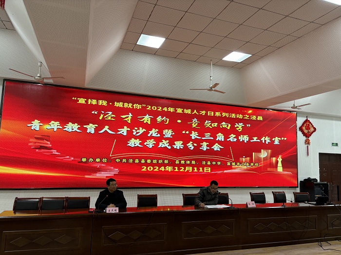 为了进一步提升我县青年教师的教学水平,促进教学创新与交流,12月11日,泾才有约•竞知向学”青年教育人才沙龙暨“长三角名师工作室”教学成果分享活动在泾县中学成功举行。活动由泾县中学副校长王先进主持,县委组织部、县教体局、宣城市工业学校有关负责同志,县内多所学校青年教师及“长三角名师工作室”成员80余人参加。
