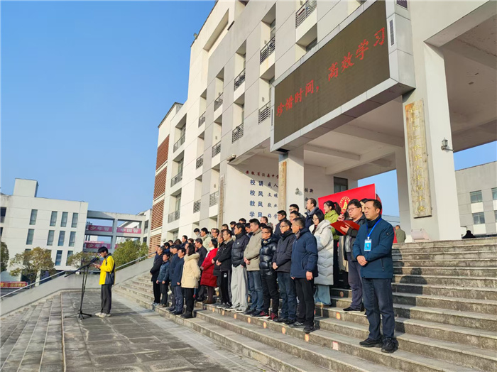 1月6日上午,188金宝博唯一官网_wap.sports918.com全体师生在状元广场隆重集合,举行“升国旗 唱国歌”仪式。高三(1)班徐昊同学作了题为“珍惜时间,高效学习”的国旗下讲话,校领导、全体班主任及师生参加仪式。