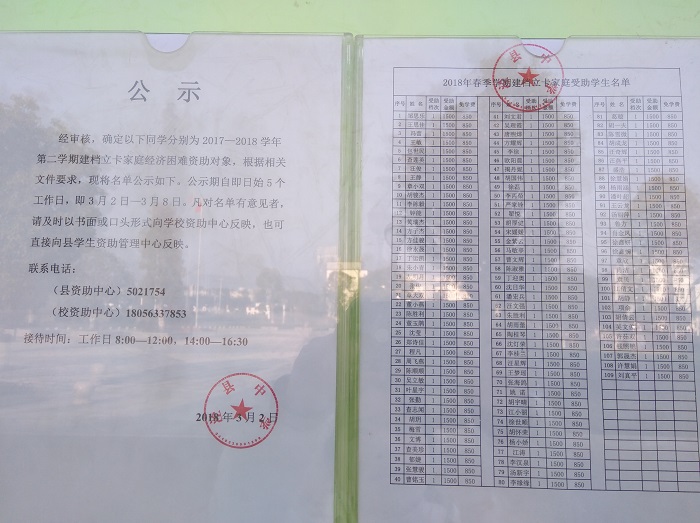 泾县中学2018年春季学期建档立卡家庭受助学生名单公示