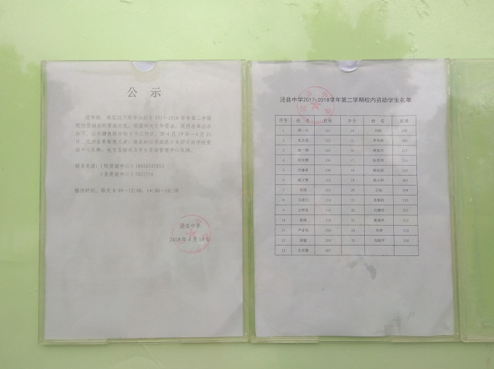 泾县中学2018年春季学期建档立卡家庭受助学生名单公示